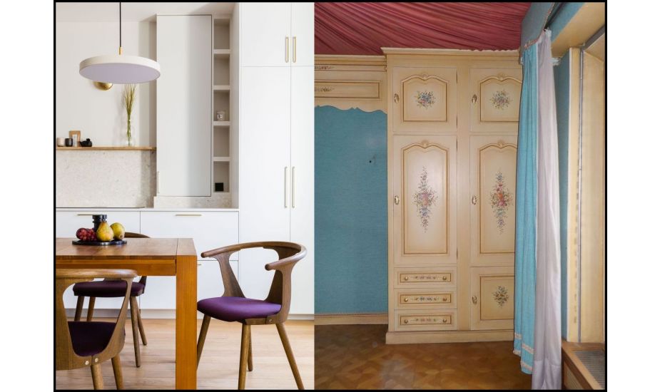 L’adresse, au cœur du Haut-Marais, à Paris, avait tout pour séduire ce couple avec deux enfants : 130 m2, dans un magnifique immeuble du début du XXème siècle à deux pas de l’école maternelle. Mais difficile de se projeter dans ce mini-Versailles des années 60, étouffé sous des plafonds en tissus plissé, avec cuisine au fond du couloir, boiseries néo-Louis XV et rideaux à cantonnières duchesse. Qui plus est : le lieu n’était plus habité depuis dix ans. Camille Hermand y a surtout vu une surface (potentiellement) baignée de lumière. Il suffisait juste d’y faire souffler un grand vent de fraîcheur.