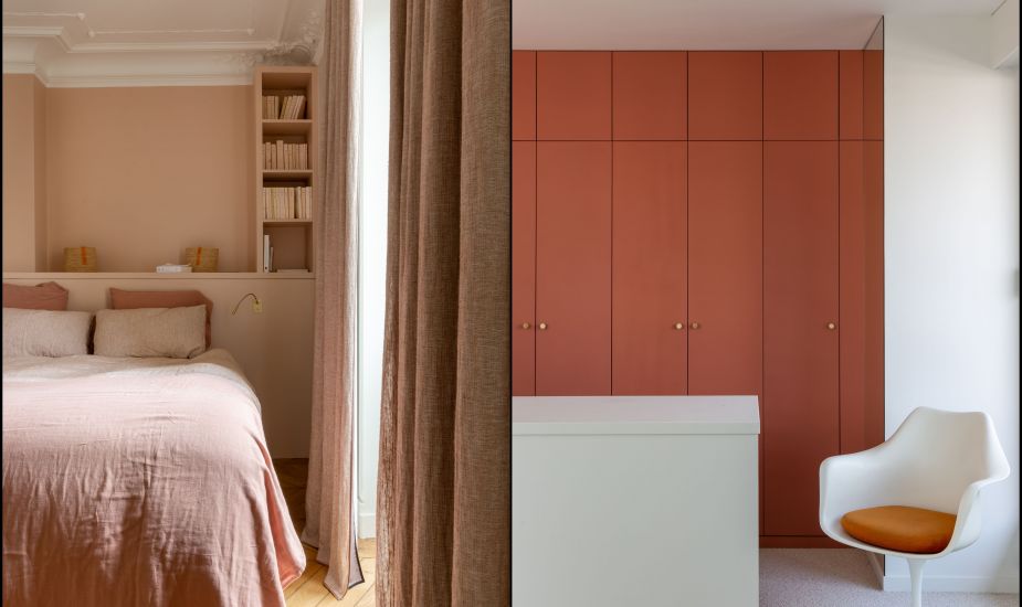 La menuiserie sur mesure permet d’exploiter pleinement les volumes disponibles, même les plus atypiques. Un placard qui épouse les angles d’un mur, une étagère qui suit les courbes d’une pièce ou une tête de lit intégrée avec des rangements sont autant de solutions qui apportent à la fois praticité et esthétisme. (Photo 7 Projet République).