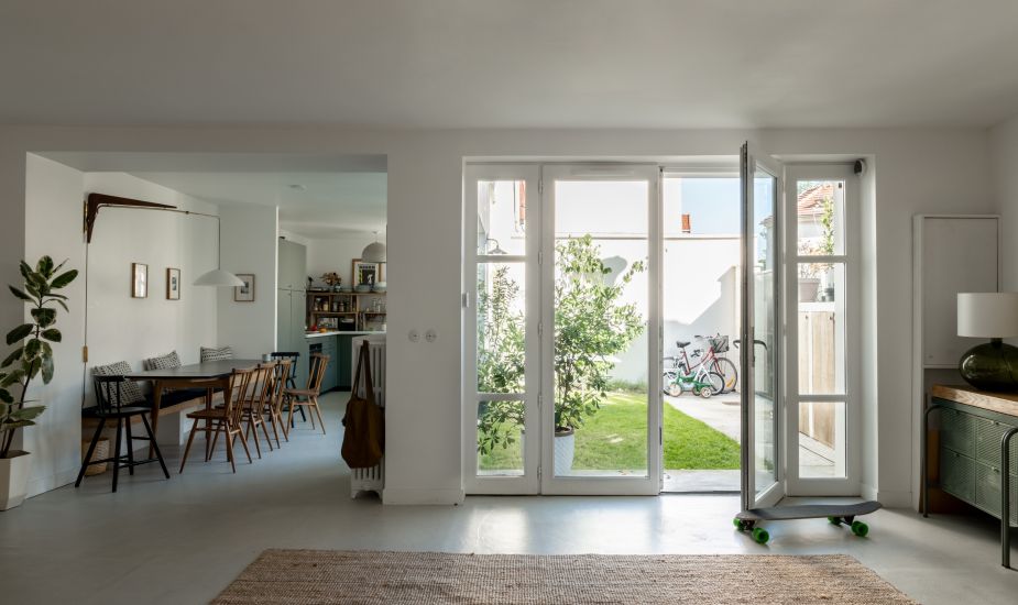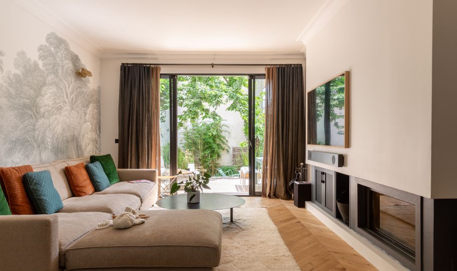 Autre astuce : pour éviter que les bruits du salon ne se diffusent dans les chambres, l’ajout d’une porte vitrée à l’entrée du couloir est une solution idéale. En plus de son rôle acoustique, cette porte laisse passer la lumière naturelle et conserve une belle perspective visuelle. (Photo 4 Projet Rivoli).