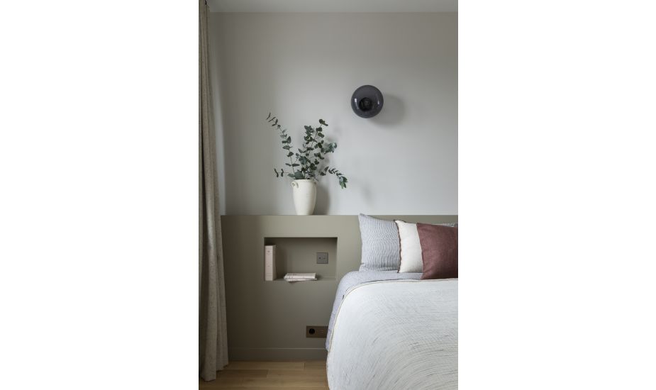 Deuxième concept : une géométrie harmonieuse. Les têtes de lit menuisées tracent des soubassements colorés qui posent le décor, tout en intégrant de multiples fonctions. On peut aussi redresser un mur oblique et se servir de l'espace perdu pour y creuser des étagères. C'est plus agréable, c'est archi-bien pensé.